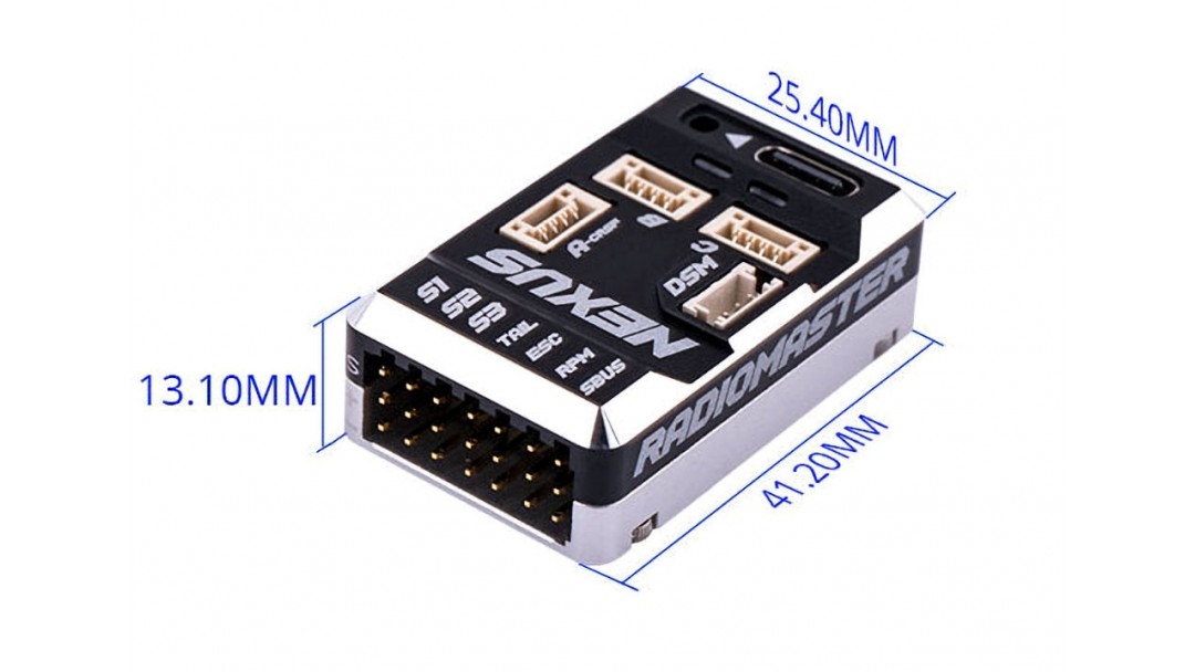 Our Plug’n’Play solder-free RP3-H ExpressLRS receivers feature a locking connector system to ensure a stable connection between the control unit and receiver. The selected receiver type also offers DSM and S.BUS ports. The NEXUS features a multi-function ports for future expansion.
