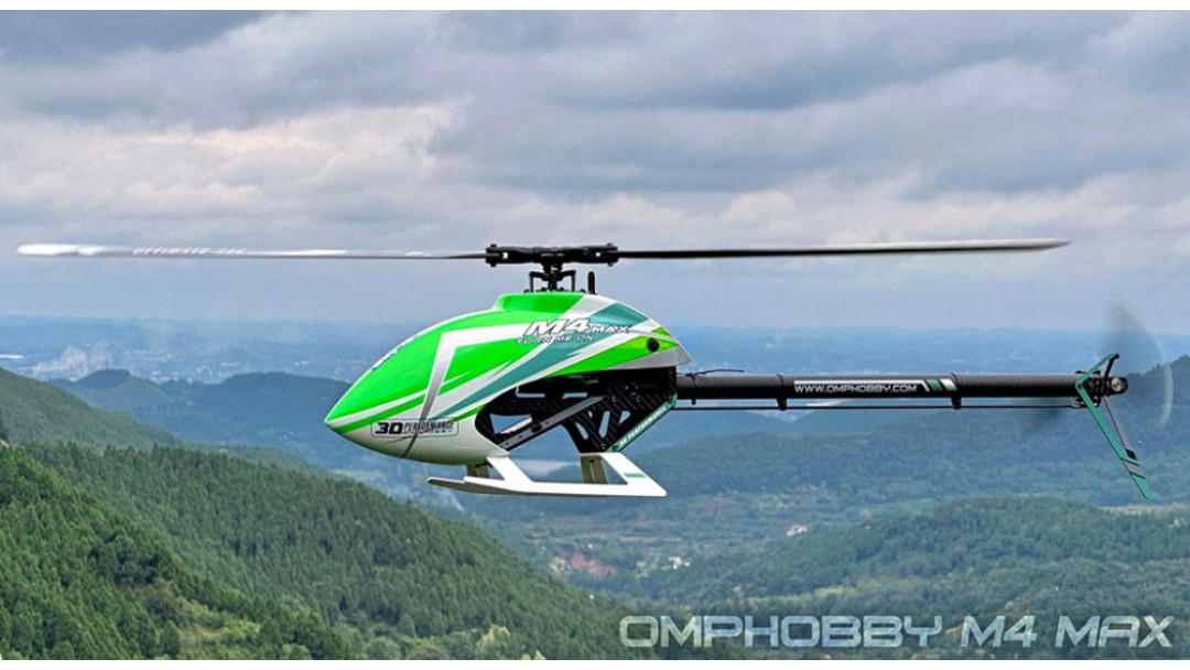 OMP Hobby M4 Max is based on the proven M4 air-frame with all its beloved features. Swinging 420mm blades, the MAX brings much lower disc loading, enabling smoother and more dynamic flying styles with a much floatier feeling.