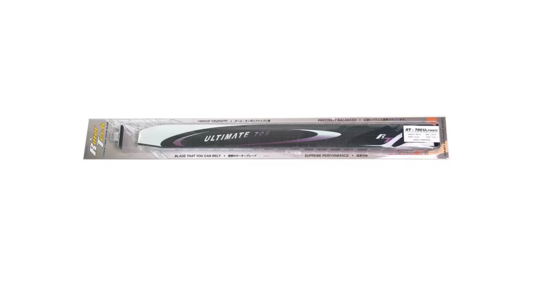 Specifications Airfoil: Symmetrical Length: 700mm Width: 63mm Root Size: 14mm Hole Diameter: 5mm Package Includes RotorTech Ultimate 700m Main Blade Set x 1 |