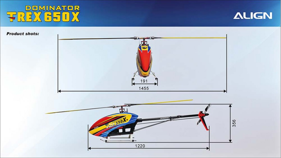“T-REX 650X Dominator Super Combo” is the helicopter for all pilots that has both super power and excellent stable 3D flight like 700-grade helicopter and elegant slow 3D dynamic flight performance like 600-grade helicopter.
